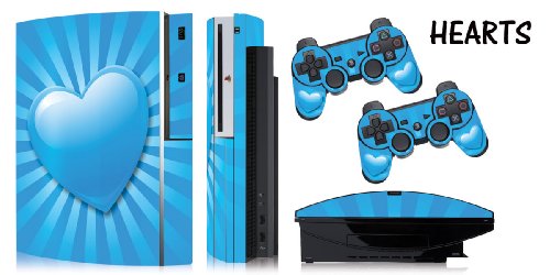 Protective skins for FAT Playstation 3 System Console, PS3 Controller skin included - HEARTS BLUE Reviews