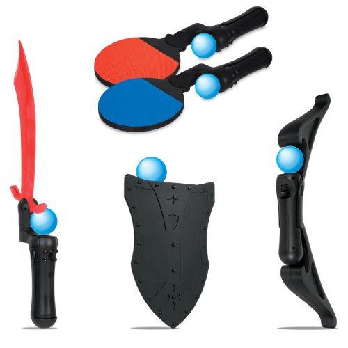 The 5in1 Game Essentials for PS3 Move is the perfect accessory pack for playing the Sports Champions game. Everything that you need to maximize your game experience is in this bundle. The 5in1 Game Essentials puts you in the game like never before and includes 2 Table Tennis extensions, Archery Bow, Sword extension, Shield and two Remote Cradles for multi-player action. Bring the action home or on the MOVE with dreamGEAR's 5in1 Game Essentials.